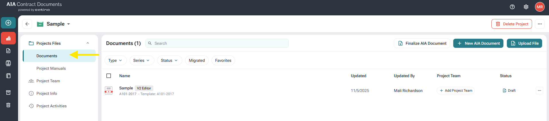 We also simplified the Project Files navigation found within the Projects Tab, making it easier to find what you are looking for within your project. We changed "AIA Documents" to just "Documents" and removed the "Upload" folder. Now all project related documents will be stored in the Documents folder with distinguishing icons. Any previously uploaded file will be accessible in this updated Documents tab.